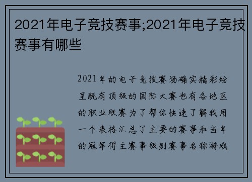 2020电子竞技比赛